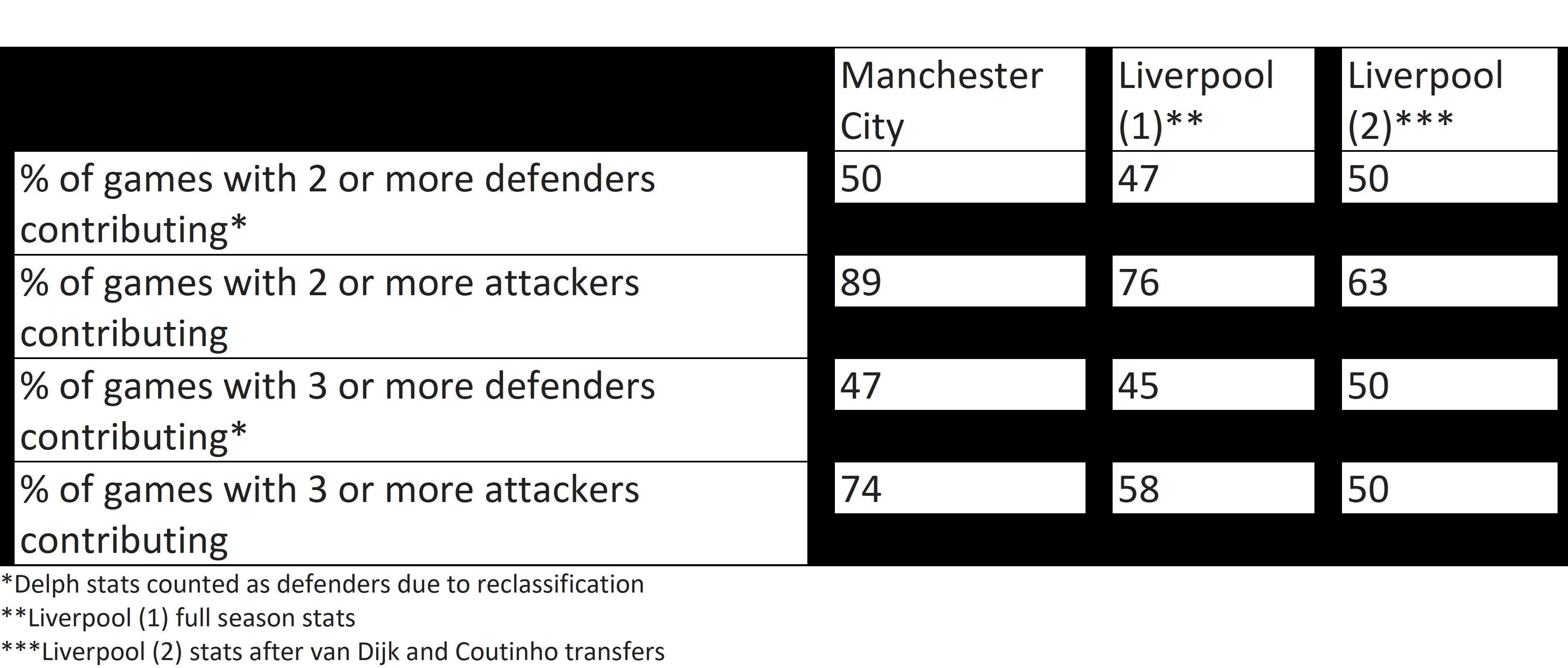 With that in mind, I researched the numbers from last season of Liverpool and Manchester City to see what the numbers were. I have only researched these two clubs for a few reasons. These are the two best-attacking clubs who also have multiple defensive assets that people would be desperate to have. Also, Manchester City and Liverpool are bookmakers’ favourites for the top two spots and indeed finished first and second in the predictions on the podcast on episode 73. As such it seems likely that these two will provide the most triple ups to our fantasy teams.